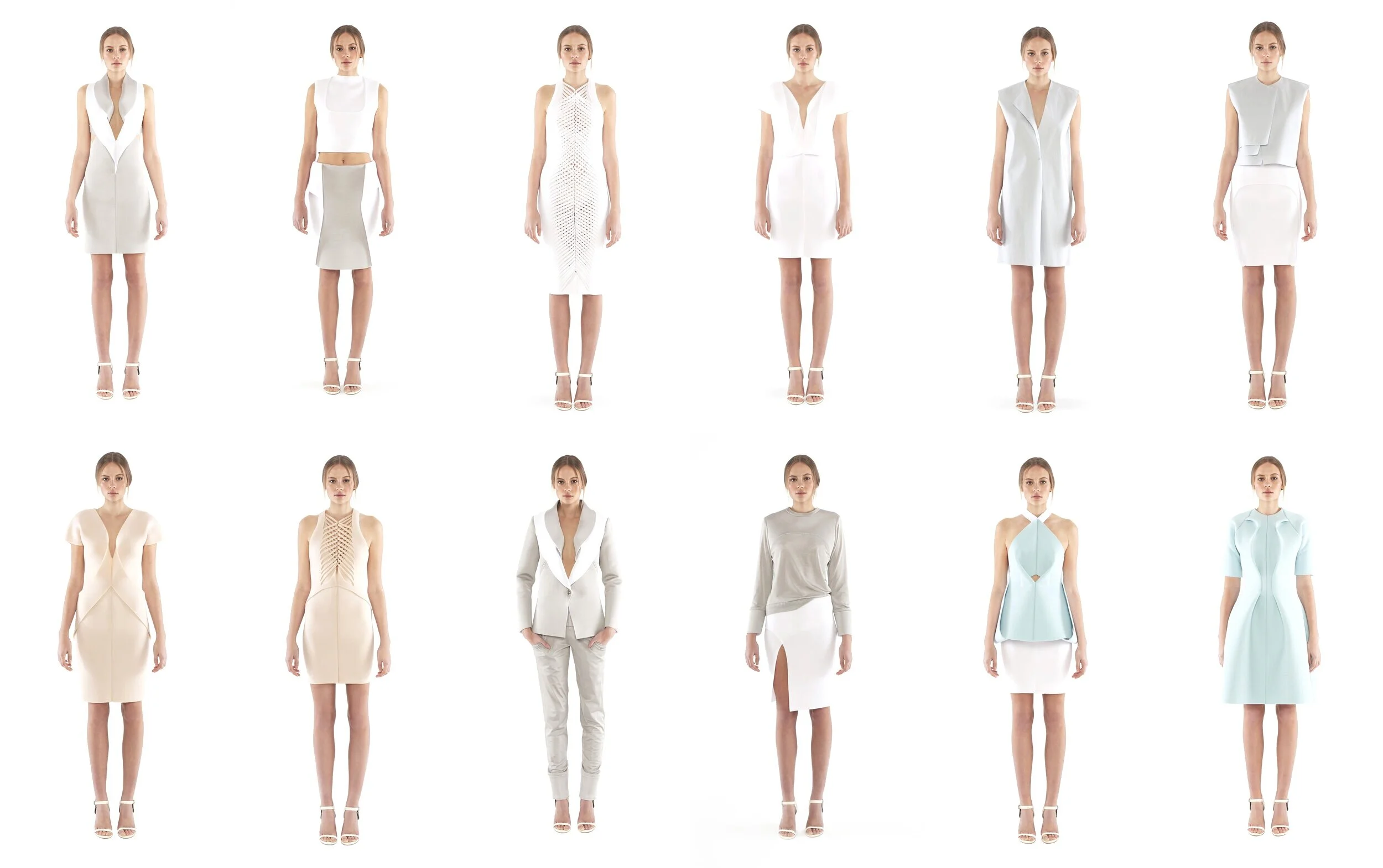 Inter/sect is a capsule collection, serving as an intersection between the conceptual ‘Dis/sect’ collection and a more commercial, wearable approach. The collection’s aesthetic sees a balance between intricate detail against clean simple silhouettes, along with signature sculptural drapes and cutting techniques executed with clean minimalistic simplicity.